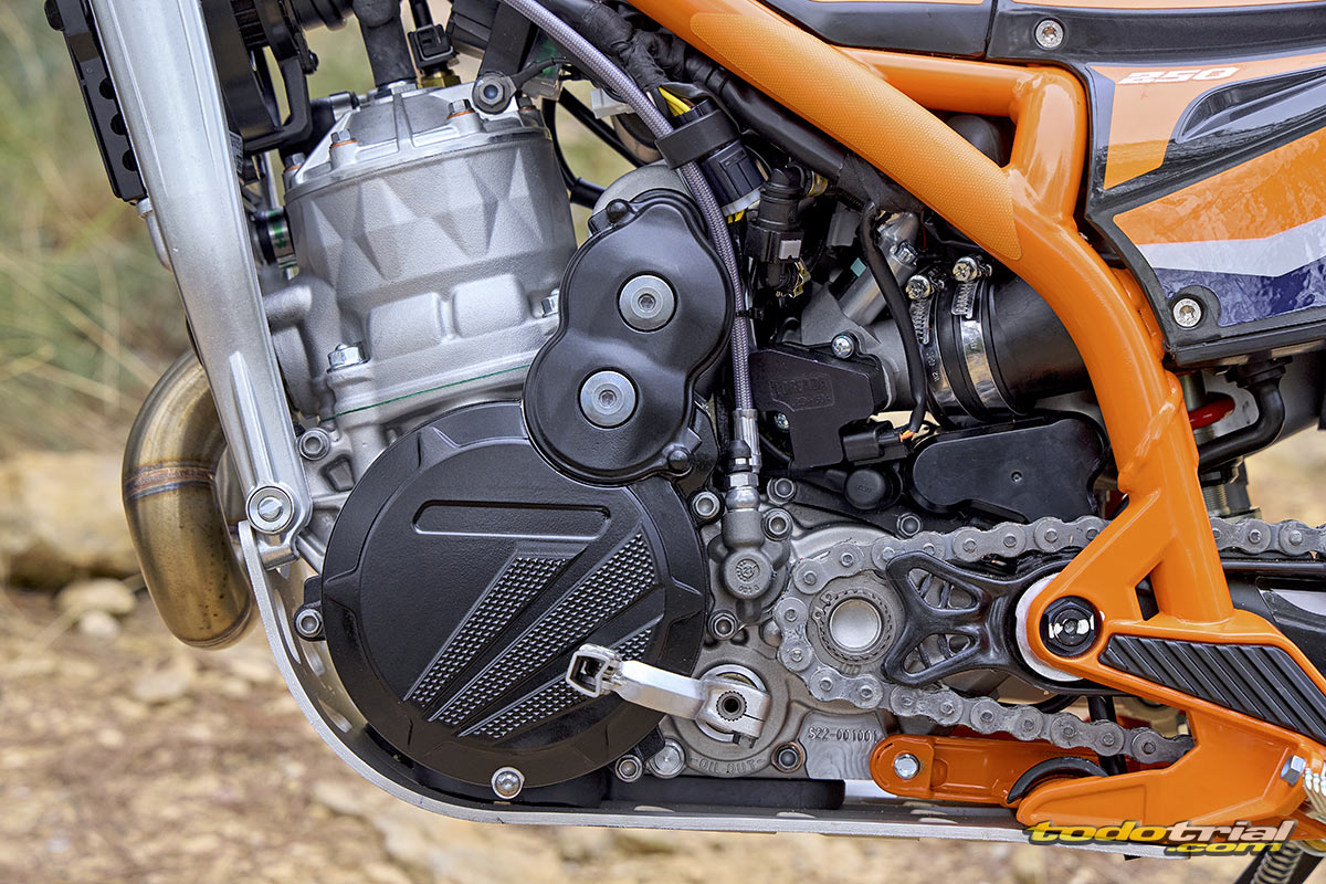 Die Versionen 250 und 300 SC Factory und SC E verfügen außerdem über einen dekomprimierten Zylinderkopf und ein längeres Getriebe mit einem 400 D FIM TR Ritzel und einer 101-gliedrigen Kette, was die Traktion und Kraftentfaltung in technischem Gelände verbessert.