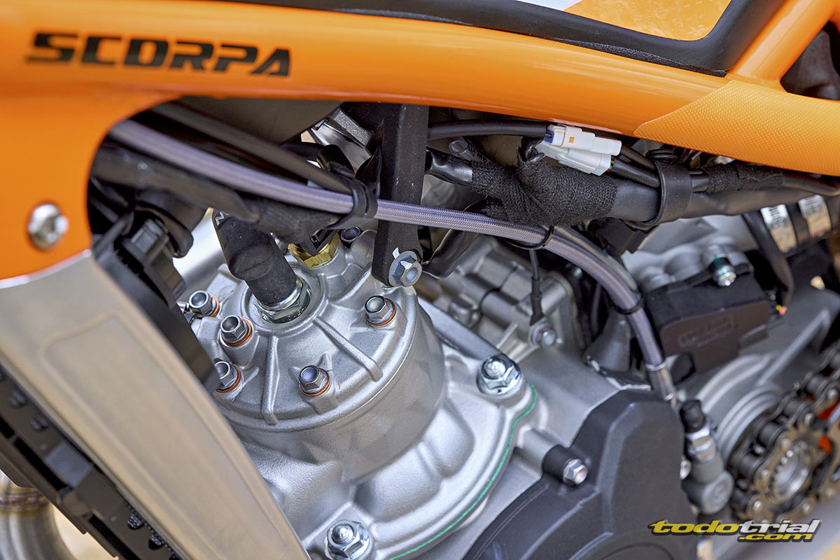 Scorpa bietet erstmals eine Modellreihe mit Elektrostarter an , der kompakt und ergonomisch in die 250- und 300-ccm-Modelle integriert ist .